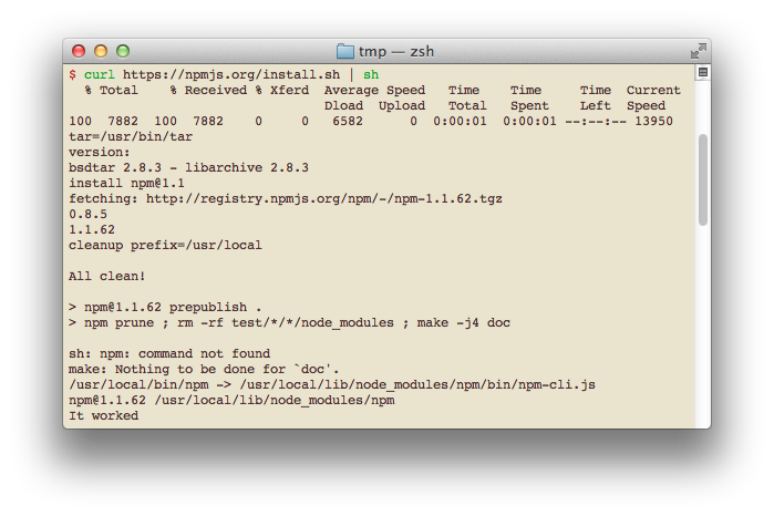 $ ruby -e "$(curl -fsSkL raw.github.com/mxcl/homebrew/go)"